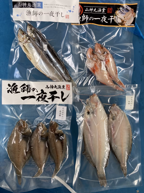 (干し魚は、真カレイ、柳カレイ、目玉カレイ、真サバ、のどくろ、真アジ、太刀魚、石持、カマスなど)
