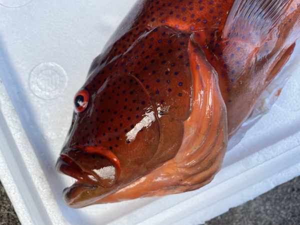 素潜りでの魚突きで捕獲しています。常に頭、エラ付近を狙うように意識していますが、体に撃つ事もあります。