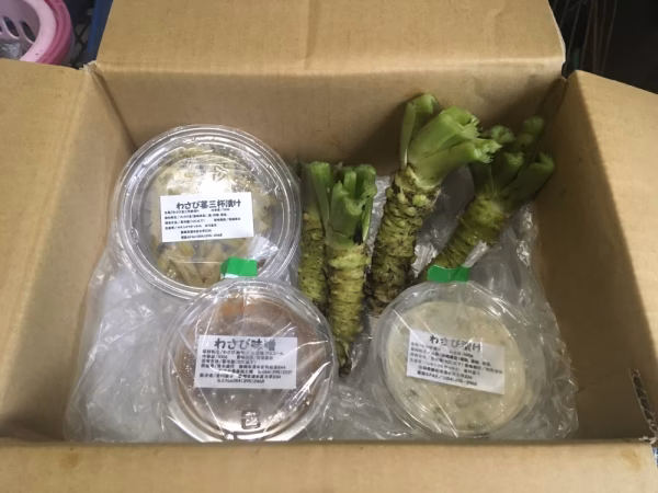 - 冷蔵庫で本わさびは野菜保存袋入り1ケ月程度、わさび漬け等は容器に表示(2週間〜1ヶ月)