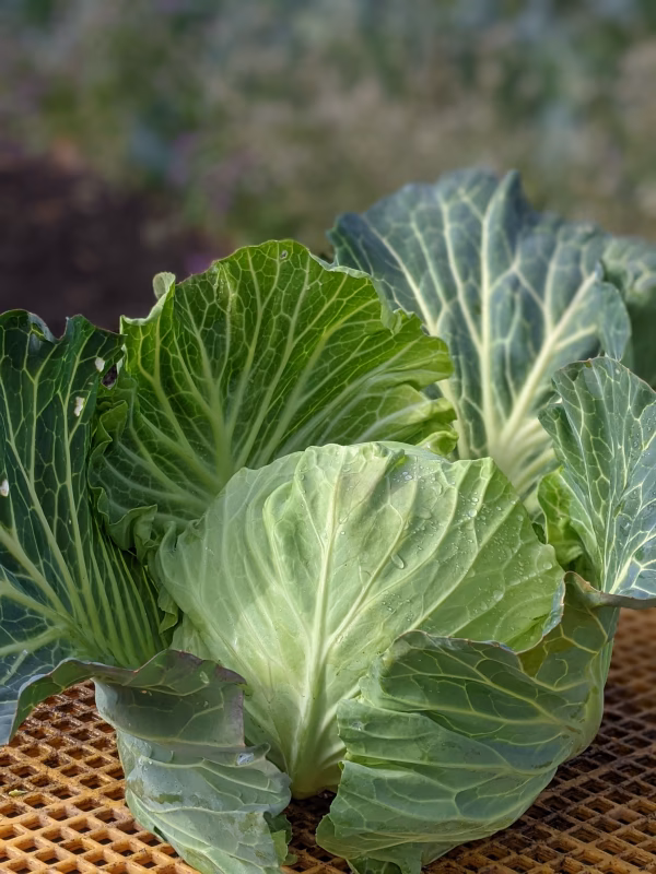 虫の食害を受けやすく、植付を遅らせ、虫の動かない寒い時期に栽培をしています。そのため成長も遅く、じっくりじっくり育ったキャベツです♪