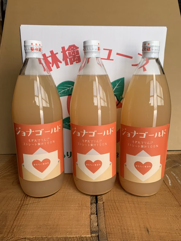 ジョナゴールドの100%りんごジュースをもぎたてで作りました。
