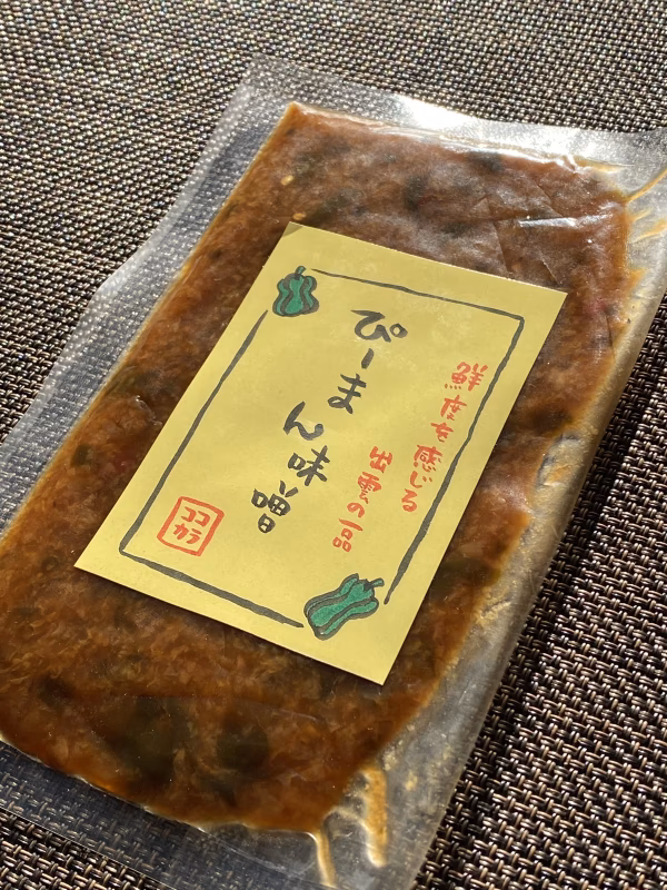 出雲の農家の作る出雲の一品です。申請なピーマンと出雲の糀を使い甘めに仕上げたご飯にも新鮮野菜にもあう惣菜味噌です。