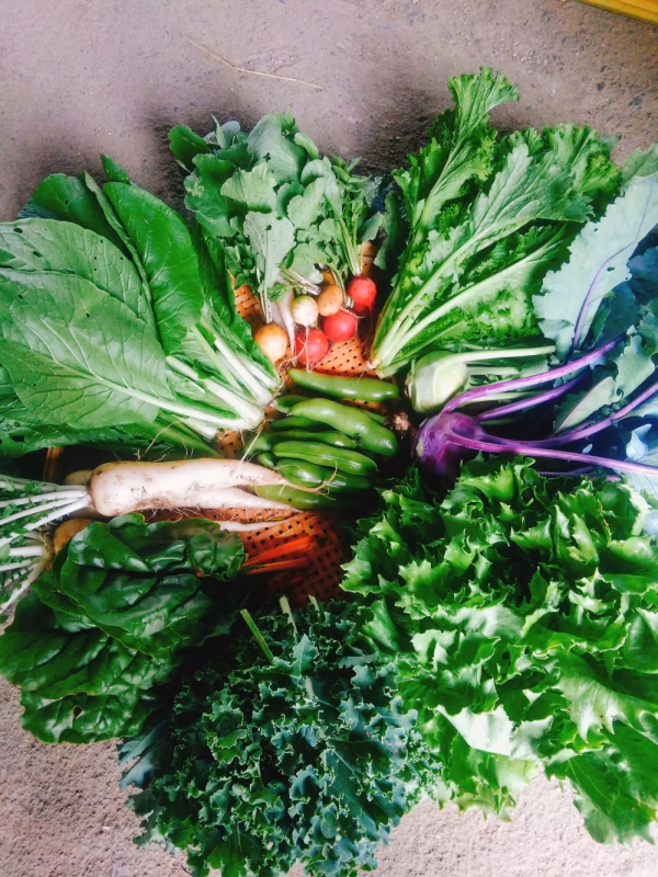 農薬・化学肥料を使わず、やさいの育つ力にそっと手を添えるように育てたげんたのやさい。その時期に収穫できるもののなかから7~9種類を選び、食べることで季節を感じていただけるよう月に一度お届けいたします。