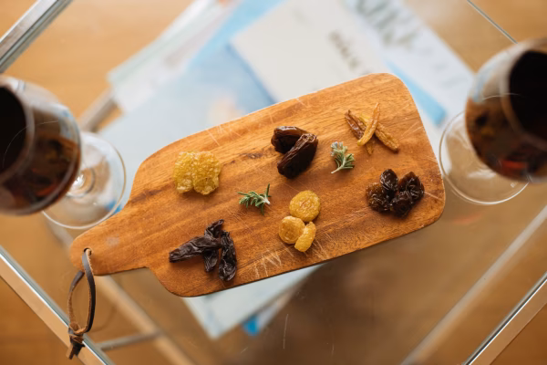 当研究所は、海藻や酒粕などの有機肥料のみを使用し、できる限り農薬を減らしながら大切にぶどうを育てています。このドライフルーツは、当研究所のぶどうを丁寧に一粒一粒干したものです。砂糖や添加物は一切使わず、食感にこだわりセミドライに仕上げました。