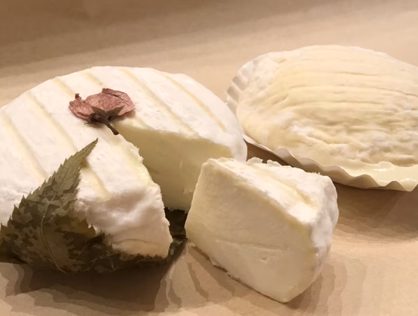 「さくら」桜の葉で香りをつけ、日本独自の微生物の力を借りるために日本酒の酒粕も入れております。ホロホロと口の中で溶ける様な食感で、今までのチーズのイメージとは異なるかもしれません。十勝のエゾヤマザクラから取れた酵母も使用しています。和風のチーズの味わいを是非お楽しみください。