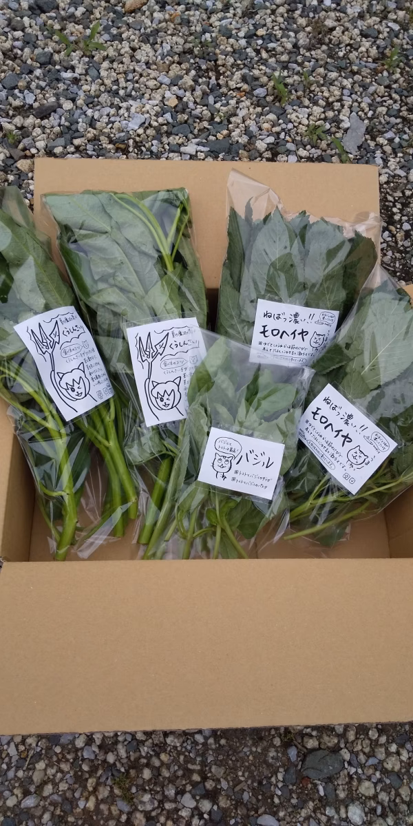 みなか農園では一年中菜っ葉(葉物野菜)を作っています。夏は菜っ葉が少なくなる時期ですが、ウチの畑では夏が旬の菜っ葉が元気いっぱいです! シャキシャキ美味しく味も濃い空芯菜(2袋) ネバネバと味が濃~いモロヘイヤ(2袋) 葉っぱが大きく香りが良いバジル(1袋) のセットです。 空芯菜はやっぱりにんにく炒めが最高😃⤴⤴ モロヘイヤはラベルに書いてあるモロヘイヤ丼😆 バジルはトマトだけでなくジャガイモとも好愛称😍 皆さん、色んな食べ方を試して教えてください☺