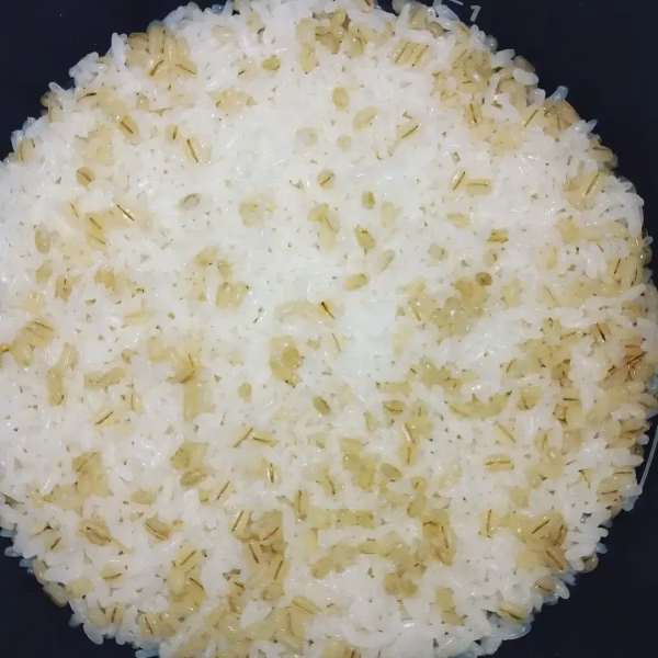 白米一合に対して大さじ2〜3杯入れ、もち麦と同量の水を入れ炊いて下さい。