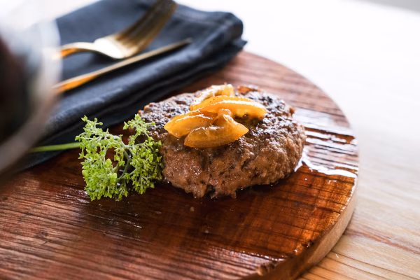 長く人気だった足利マール牛のハンバーグ、さらに美味しくなって100%足利マール牛の粗挽きハンバーグへとリニューアル致しました。せっかく食べるなら足利マール牛の肉の旨味を存分に味わってほしい、と思いを込めて作ったものです。1つ150g、冷凍でお届けいたします。
