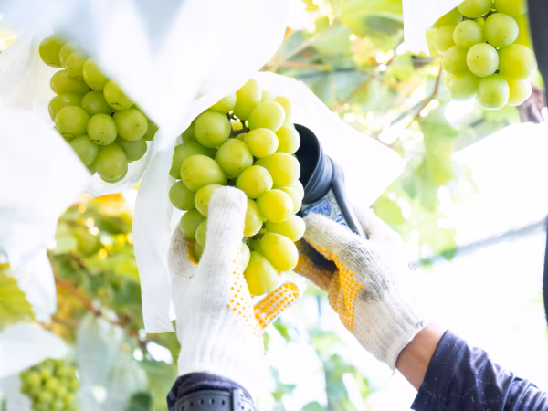 糖度が高く、マスカットの香りが感じられる、ぶどうで、皮ごと食べられます。
