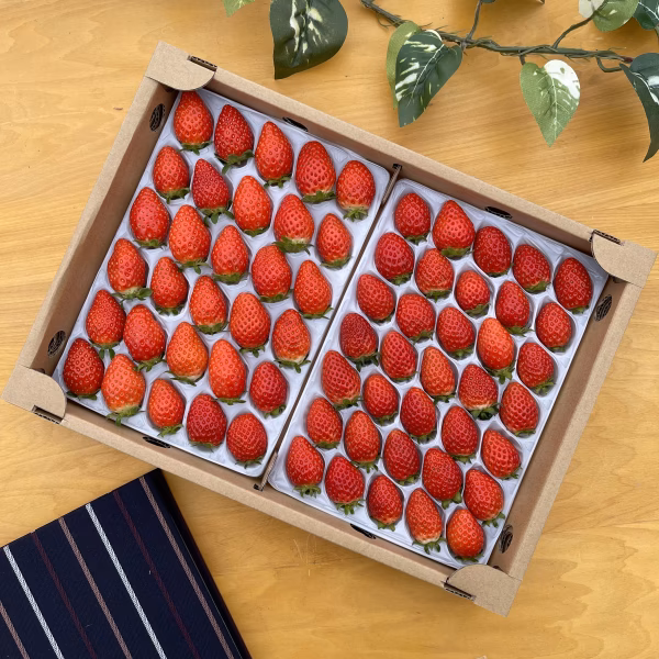 滋賀県産いちご農園直送! 小粒(約8g〜15g前後のいちご詰め合わせです。 スイーツ屋さんなどに使いやすいサイズになります。 もちろんご自身で家で食べる用や、ご友人や親戚に送っても喜ばれます。 箱はシンプルな茶色の箱になります。 プレゼント包装(有料)や、熨斗(無料)対応しております。 -------------------------------- ※熨斗対応しております。 ※プリント包装の場合はプラス100円になりますので、ご購入の際お間違えないようにして下さい。 ※熨斗や到着の指定日時がありましたら、必要事項内にご記入下さい。対応可能です。 -------------------------------- 下記の5種類の中からの品種を送り致します。指定はできません。 Mixになる場合もあります。 ★あきひめ★ 長めの円錐形をしていて、皮膚は柔らかめ。酸味が少なくジューシーで甘いイチゴです。酸味が少ないので子どもに大人気です。 ★かおり野★ 名称にも「かおり」がつくほど上品な香りがします。果肉は比較的に固めてですが、果汁が多く酸味が穏やかでさっぱりとした甘みを感じるイチゴです。 ★紅ほっぺ★ 酸味が強く本来の甘酸っぱさと深い味わいを堪能出来る品種です。 名前の由来にもなっている「紅ほっぺ」はほっぺが落ちるほど噛んだときの感触から来てるそうです。 ★よつぼし★ 果肉しっかり、濃厚で甘味と酸味のバランスが抜群で濃厚味です。 ★おいしーベリー★ 濃い赤色で果肉がしっかりしていてビタミンCたっぷり、濃厚さと酸味が程よく一度食べたらやみつきになります(^^) ★発送について★ こちらは特殊なな梱包素材を使用しております。 「ゆりかーご」と言って新発想の宙吊り包装でイチゴを守る新型イチゴ容器です。 やわらかいフィルム素材で、個々のイチゴ形状にピッタリフィット。緩衝面積拡大で表面の損傷が軽減します。 宙吊り構造なので、輸送中の振動を緩和、スレ傷を防止します。 伸縮性のある独自フィルムで、イチゴをホールドしながら衝撃を吸収します。 業界初のフィルム成形でイチゴをやさしく包みます。ゆりかーご独自の成形技術でフィルムをイチゴ形に成形しております。 なのでより新鮮で美味しいイチゴを発送致します(^^)