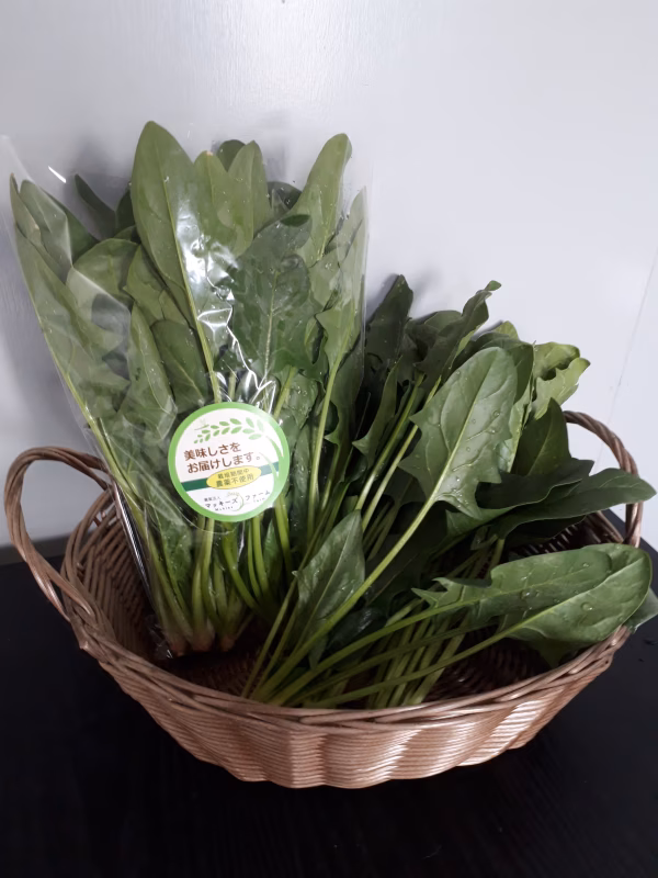 農薬を使わず、牧場から仕入れた堆肥でじっくり育て上げた濃い味ホウレン草です。