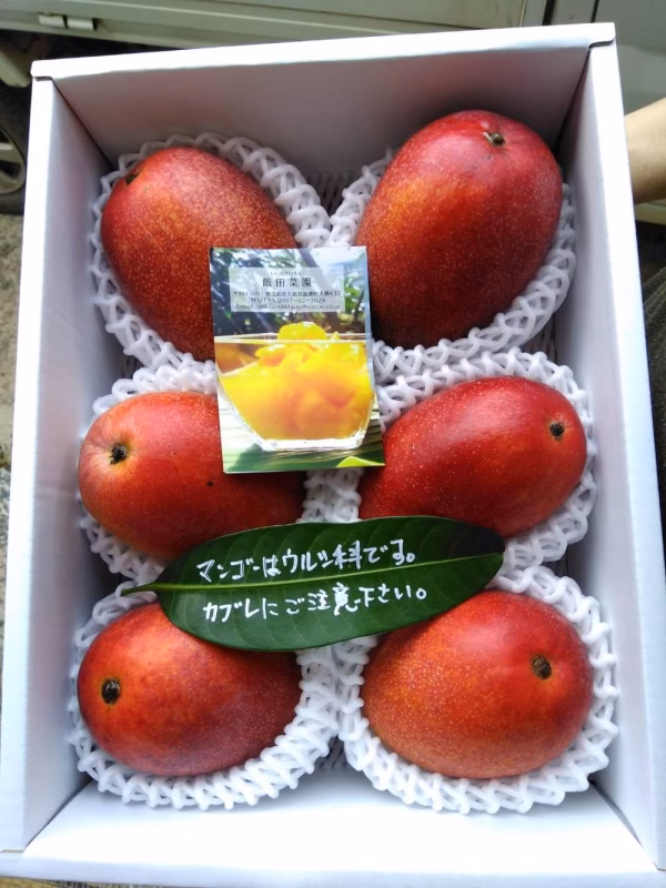 その中でも、更に厳選した見ても美しいマンゴーを化粧箱に入れて用意しております^ - ^