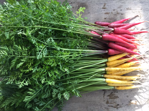 大きさにバラつきがございますが、全体的に小さめとなります。品種は、紫皮のコズミック・パープルと黄色のソーラーイエローで、どちらか1種類でもミックスでもご要望に応じます。肥料は近海のホタテ貝粉末のみを用い、農薬は不使用となります。はかりしれないニンジン・パワーを、ジュースで摂りたい方に。洗いあり、泥つき、どちらでも可。包装は、印字なしの新聞用紙となります。
