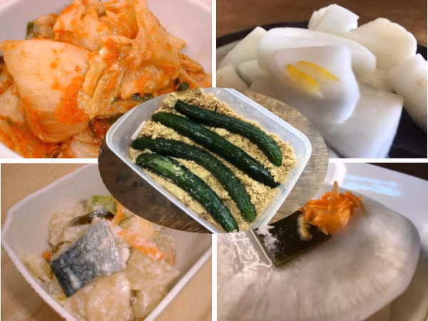 ぬか床セットに旬のぬか漬け×2、それに風来の看板漬物、白菜キムチ、そしてこうじ漬け、ゆず大根、千枚漬けのセットになります。どちらもご飯がススム漬物です。この機会にぜひどうぞ