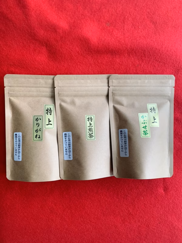 「特上煎茶」「特上かぶせ茶」「特上かりがね」を少しずつ味わえるお試しセットです。