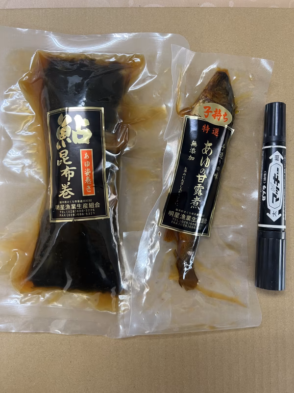 - 名称 鮎詰合せ 原材料名 あゆ(栃木県産)昆布(日高昆布)かんぴょう (栃木県産)砂糖 醤油 酒(一部に小麦を含む) 製造者 栃木県さくら市喜連川3232 明星漁業生産組合 栄養成分表示(100gあたり) 甘露煮 エネルギー 271kcal たんぱく質 16.5g 脂質 14.0g 炭水化物 19.8g 食塩相当量 0.97g ※推定値 昆布巻き エネルギー 152kcal たんぱく質 8.3g 脂質 5.2g 炭水化物 18.1g 食塩相当量 0.81g ※推定値