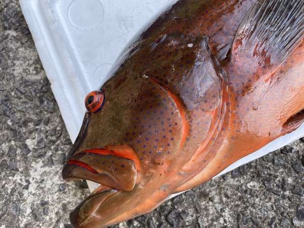 素潜りでの魚突きで捕獲しています。常に頭、エラ付近を狙うように意識していますが、体に撃つ事もあります。