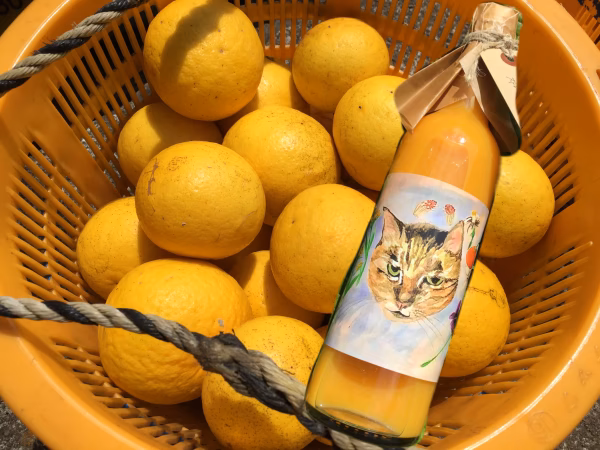 みかんジュースは青島みかんストレートです。手で一つずつ剥いて絞ったジュースです。もちろん当園の栽培した青島みかんのみ使用しておりますため農薬不使用のみかんストレートジュースです。意外と見かけないものです。