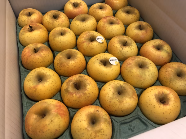 晩生種の黄色いりんごで、シナノゴールドより甘みが強く、同じくシャキシャキの食感が楽しめます。