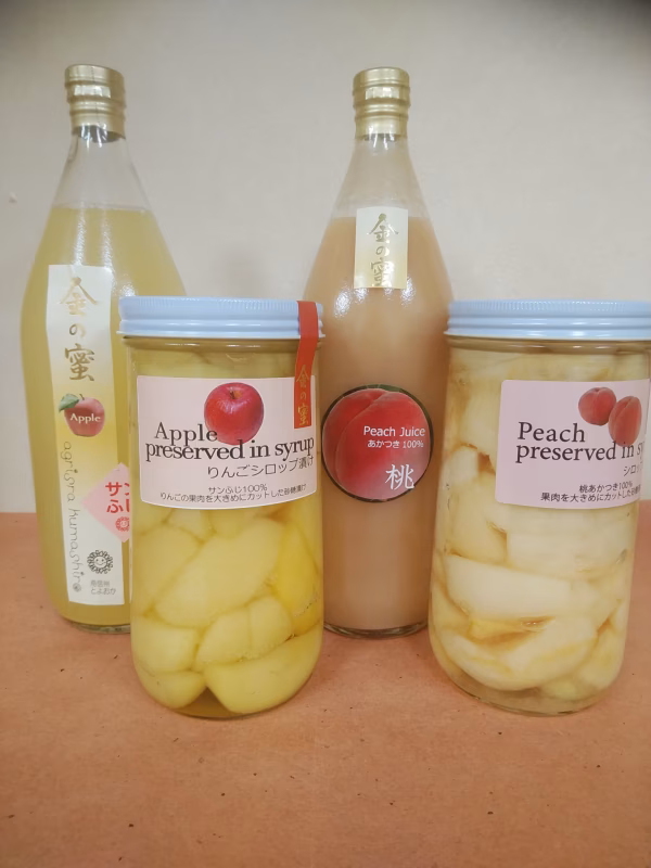 • 【金の蜜】桃とりんごのジュース&シロップ煮、合計4本セット!!