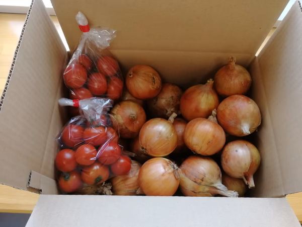- トマトは野菜室で玉ねぎは、直射日光の当たらないところで保管ください。