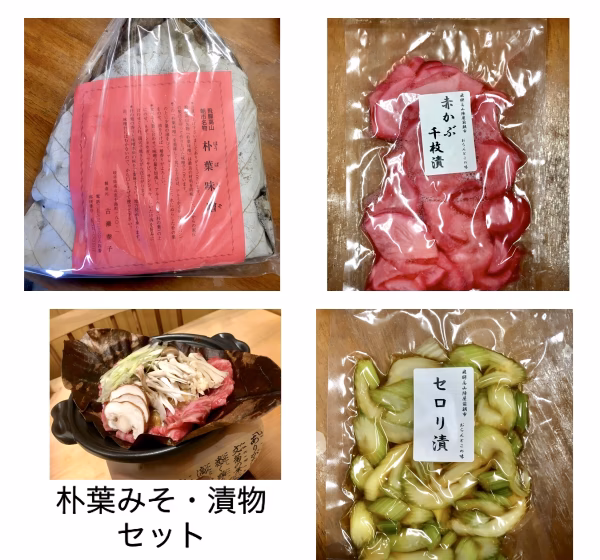 - 漬物は熱処理してあるので、常温販売しています すぐに食べれない時は冷蔵庫保存してください朴葉みそ 5カ月 セロリ漬・赤かぶ千枚漬 20日