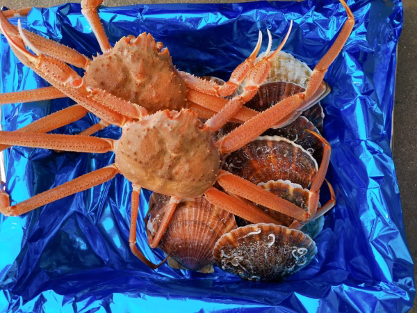 水揚げされたばかりの新鮮なズワイ蟹と新鮮なホタテのみでの漁師自ら目利きをした厳選セットとなります。