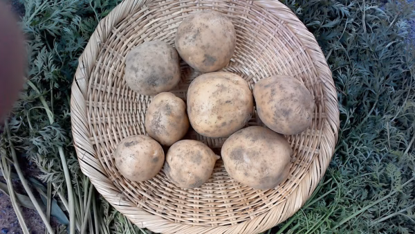 じゃがいもは、種がそれぞれ、キタアカリ、デジマ、インカだったようですが、農薬を使わずに育てた種芋を採りたく、数年自家採種を続けているうちに、うちの畑仕様のジャガ芋になってきたように思うので、そのことを記載しておきます。