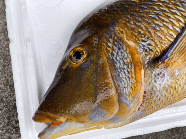 素潜りでの魚突きで捕獲しています。常に頭、エラ付近を狙うように意識していますが、体に撃つ事もあります。