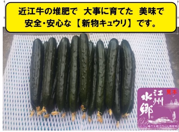 当地は 滋賀県琵琶湖沿いに位置し 町内に沿いの日野川の肥沃な粘土質で 米・野菜の栽培に大変良く 大変美味との評価を頂いており、安全安心な キュウリです。