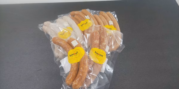 チューリンガー、ドイツチューリンゲン地方の特産ウィンナーになります。燻製なしの白いウィンナーにバジルやオレガノ等の香草が入った商品になります。