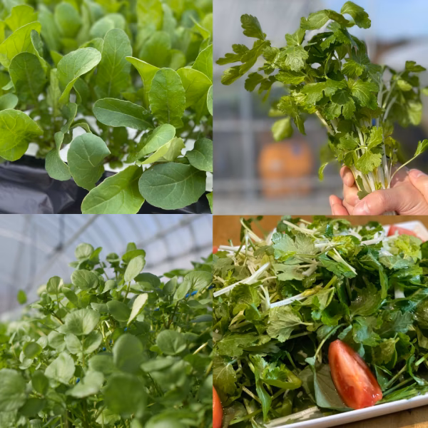 GPAファームでは、クレソンとミニセロリのほか、イタリアンパセリや、赤軸ソレル、パクチーなど様々なハーブ野菜を育てています。そんなハーブ野菜の中から私たちがおススメする組み合わせを毎月定期でお届けするセットです。