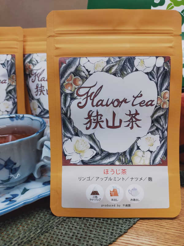 先般、㈱NTT東日本、日本薬科大学、入間市の産学官・3者で“地域活性化”に連携して取り組む協定を締結。その協定に伴い各者の得意分野を活かし立案企画して誕生した企画商品です。その企画に賛同した入間市内の茶業者(千歳園)で製造しました。他に、他店にて3種類の狭山茶フレーバーティーが在ります。詳しくは、入間市役所・農業振興課又は商工観光課まで。。。