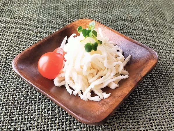 少し足した野菜とドレッシング次第で、”切干大根”の白と、ほかの素材の色が映えて、とてもきれいです。