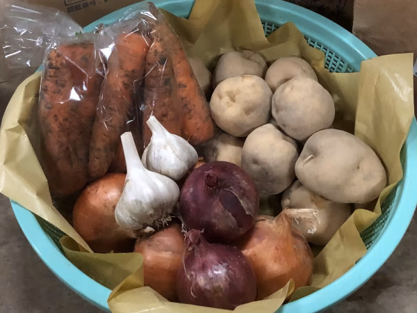 越冬有機野菜セット:昨年秋に収穫した野菜たちが一冬じっくり越冬し、澱粉質が糖に変化して甘さが増した、この時期限定、数量限定のセットです。