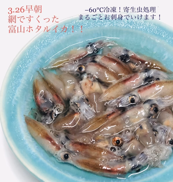 朝、獲れたてのホタルイカを海洋深層水で洗い−60℃で急速冷凍!