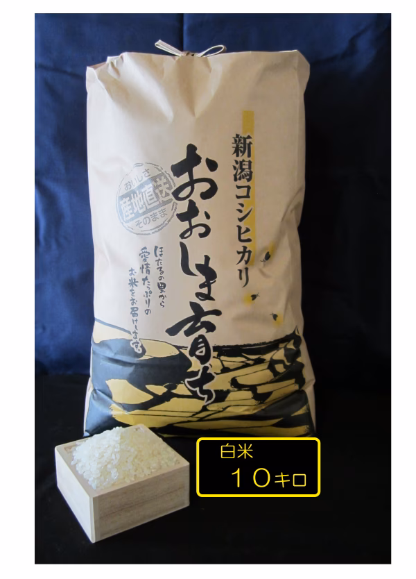 新潟県上越市、東頸城丘陵の大島の棚田で育ったコシヒカリです。農作物にとって最良の自然環境で農薬、化学肥料を控え栽培しました。