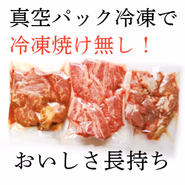 人気の鳥取和牛の中落カルビ、オーストラリア産のたれ漬けハラミ、豚ハラミ3種をセットにしてお届けします。