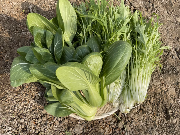 有機肥料を使用して育てた水菜とチンゲン菜を1kgずつ