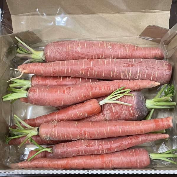 (写真の金時人参は 約1kgですが、発送するのは1.8kg入りです。)