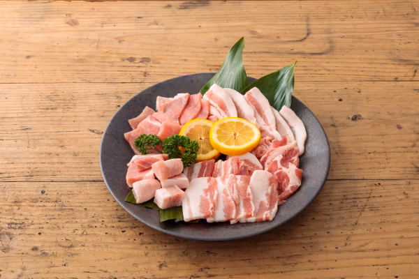 栗とカシューナッツをたっぷりと食べて育ったことで、脂肪融点が30℃と低く(通常38℃前後)、柔らかくて舌の上でとろける口当たりです。 体内では作られない必須脂肪酸のリノール酸が、通常の豚に比べて2倍ほど豊富に含まれており、総脂質が約40%低く、低脂肪でヘルシーです。