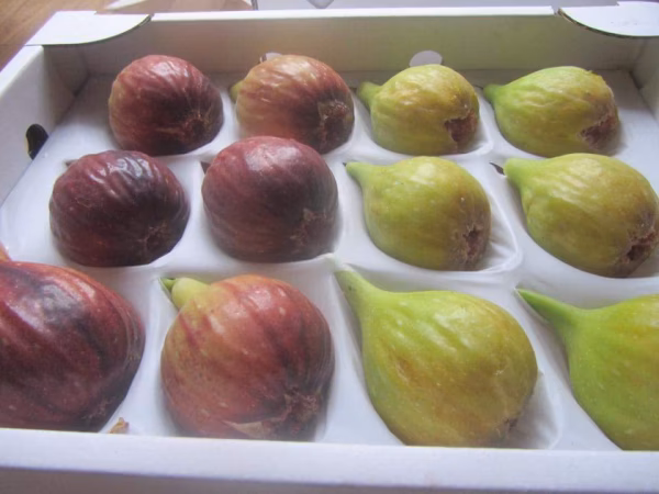 「バナーネ(白イチジク)」緑~茶褐色で完熟の、珍しいいちじくです。とろみのある濃厚な甘み。