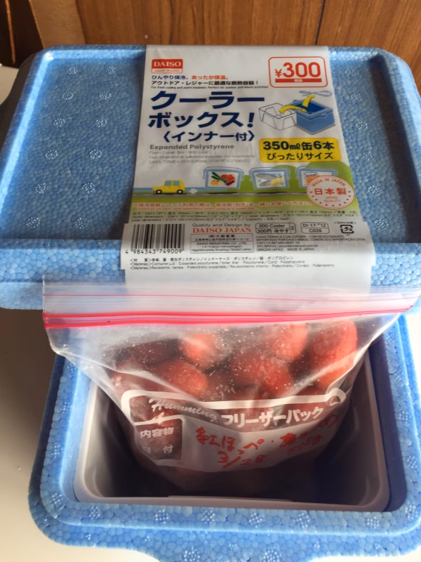 500gを2つ、100円ショップの簡易クーラーに入れて送ります。