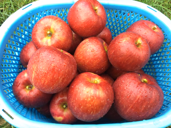他のりんごと比べるとやや柔らかめですが、甘みが多く少し酸味があります。