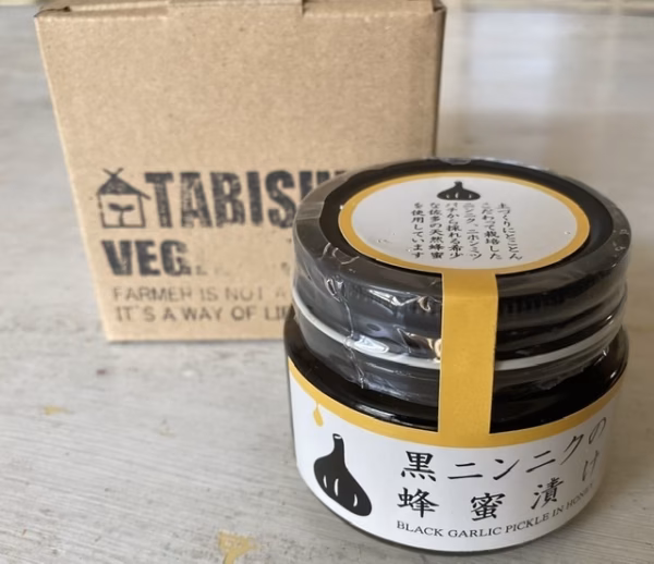 糖度45%以上まで熟成させた黒ニンニクを年に一度しか採れない希少なニホンミツバチの蜂蜜に漬け込んだ贅沢な「黒ニンニクの蜂蜜漬け」です。