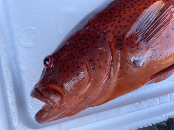 素潜りでの魚突きで捕獲しています。常に頭、エラ付近を狙うように意識していますが、体に撃つ事もあります。