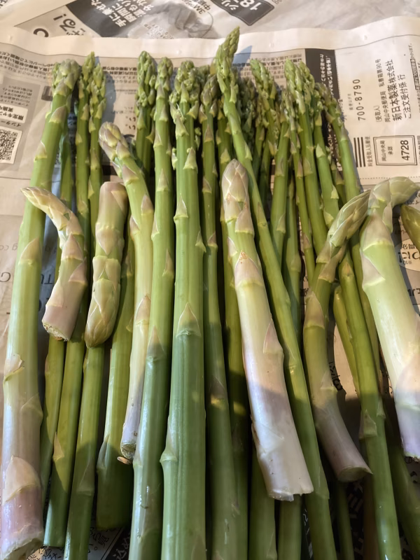 その日取れたアスパラガスさんを全て入れますね。