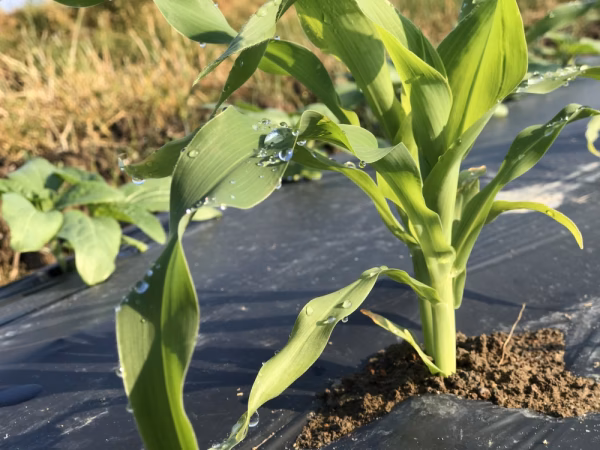 研修先で学んだとうもろこし栽培。有機質肥料を使い、土づくりから取り組んでいます。まだ気温の低い早朝に収穫し、とうもろこしの鮮度を保つよう最大限調整作業に気を使っています。ぜひ食べてみて下さい。