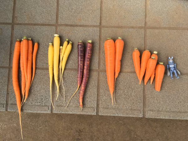 生育の途中でたまたま運が悪く、間引かれてしまった人参たち。