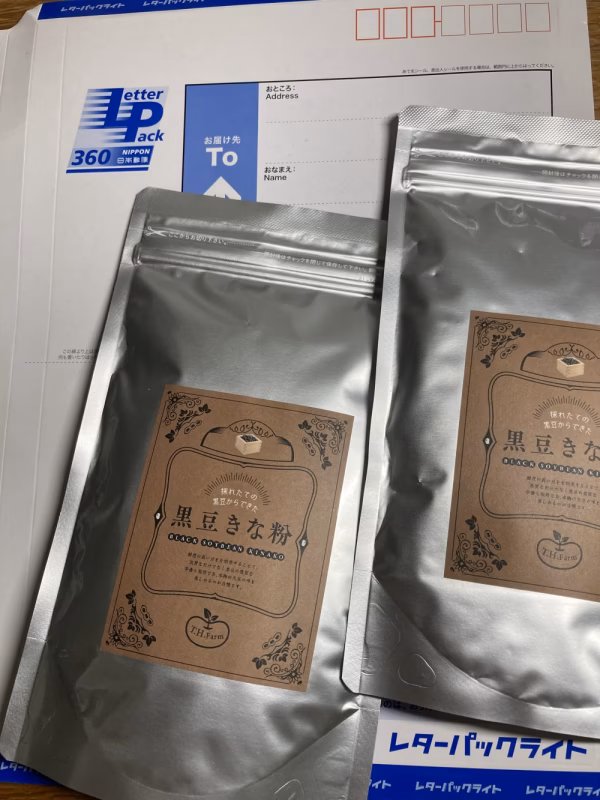 発送をレターパックライトにする事で、送料を抑えながら気軽に黒豆きな粉を楽しんでいただける様に、サイズの変更をして、2021年の新豆を使った黒豆きな粉ができました。